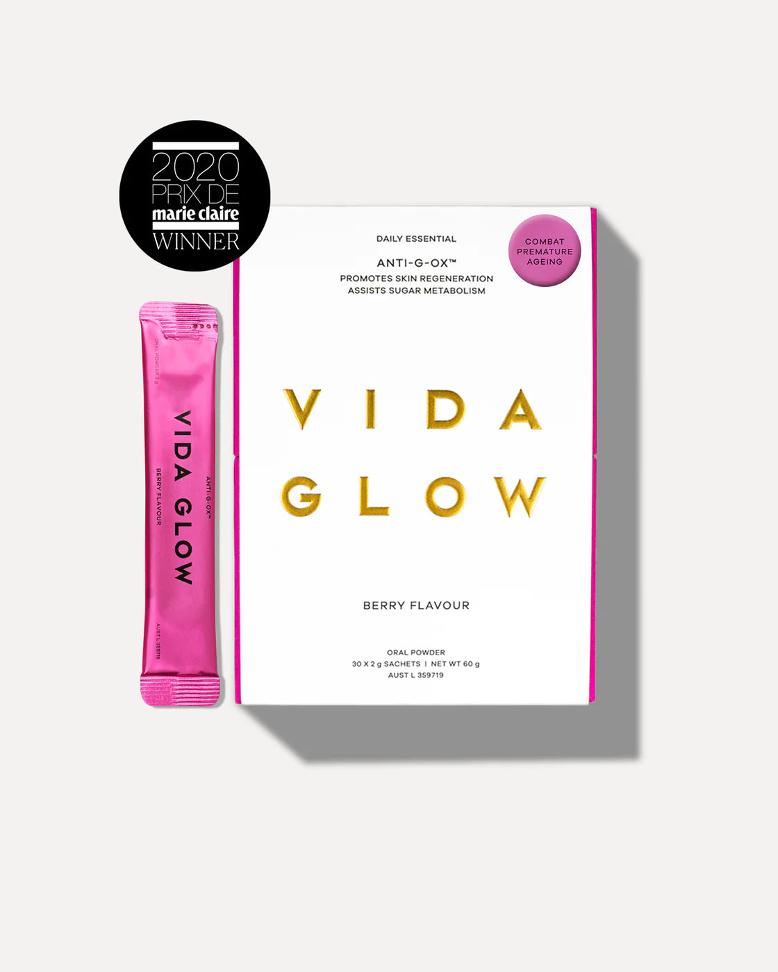 Anti-G-Ox Berry is a daily antioxidant supplement that defends at a cellular level against three root causes of premature ageing. Inflammation, advanced glycation end products (AGEs) and oxidative stress. With a potent blend of actives, the formula enhances skin health, assists healthy sugar metabolism and reduces free radical damage caused by modern life.